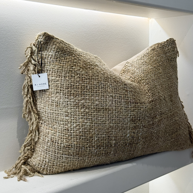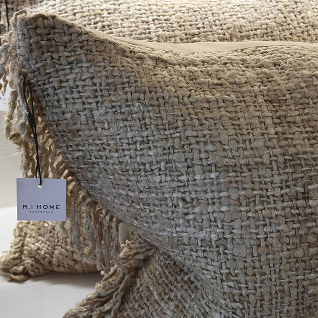Jute Fringe Cushion. Comes with feather inner.
