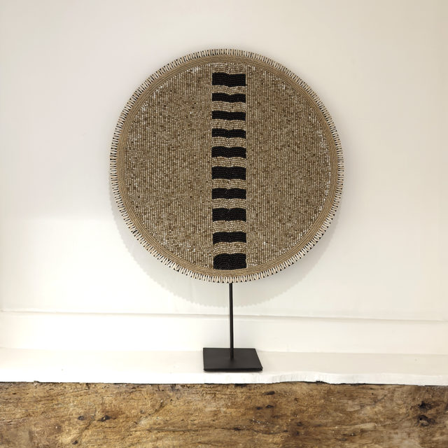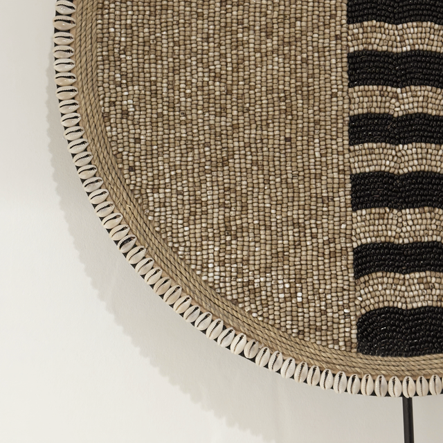 Made of bamboo and shells, combined with a black iron stand.